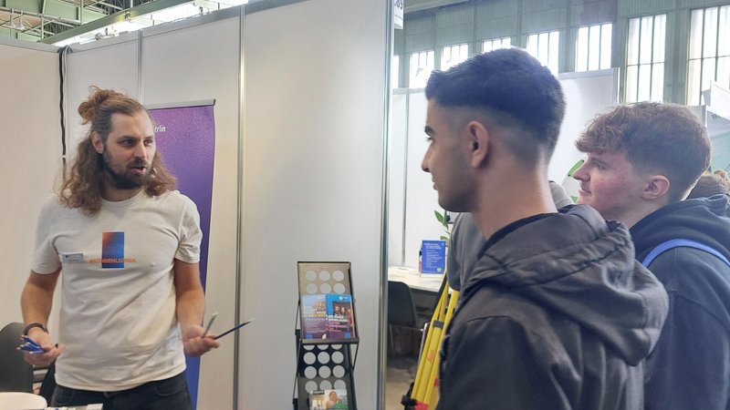 „Ich habe mir alle Berufe angeschaut und am besten hat mir die Krankenhauspflege gefallen. Ich habe mich vorgestellt und mit den Leuten am Stand geredet. Es hat Spaß gemacht!“, reflektiert die 17-jährige Hibat den Tag. Der Besuch der vocatium Berlin war für die IBA-Praxis Ankerklassen ein voller Erfolg. Die Schüler:innen konnten nicht nur konkrete Kontakte knüpfen, sondern auch neue Berufsfelder entdecken und ihre eigenen Interessen reflektieren.
