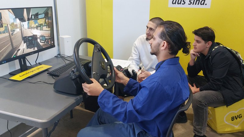 Die Schüler:innen bereiteten den Besuch im Unterricht vor und wählten Unternehmen aus, mit denen sie Gespräche führen wollten. In diesem Jahr waren über auf der vocatium Berlin 100 Aussteller vertreten – darunter namhafte Unternehmen wie Rewe Group, Deutsche Bahn, die Berliner Verkehrsbetriebe oder die Bundeswehr. Viele Schüler:innen hatten bereits einen fertigen Lebenslauf im Gepäck und konnten daher gezielt auch nach Praktika suchen. Auch gab es beispielsweise die Möglichkeit, kostenlos Bewerbungsfotos anzufertigen oder sich über Ausbildungen zu informieren – und auch der Fahrsimulator zog viele Interessenten an.
