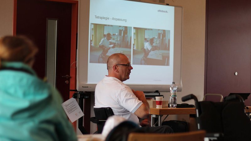 Nach einem abwechslungsreichen Frühstück ging es mit einem theoretischen Teil weiter. Bernd Eickemeyer von der Firma Otto Bock erklärte uns anschaulich die biomechanischen Wirkprinzipien, die für Rollstuhlversorgungen notwendig sind. Nach dem Mittagessen ging es zur Rollstuhl-Produktionsstätte der Firma Otto Bock in Königssee. Bekannt ist die Firma u.a. auch durch ihr großartiges Engagement bei den Paralympics. Dort hat uns der Leiter der Betriebstätte, Joachim Fidorra, die Abläufe in der Rollstuhlfertigung vorgestellt. Dann sind wir auf eine entspannte Reise in das niedersächsische Duderstadt aufgebrochen, dort haben wir im örtlichen Jugendgästehaus den Abend stimmungsvoll mit Kicker- und Tischtennisturnieren verbracht und übernachtet.