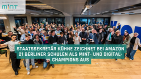 Die Ehrung der „MINT-freundlichen Schulen“ in Berlin steht unter der Schirmherrschaft der Kultusministerkonferenz (KMK). Sie erfolgte am 14. November 2025 im neuen KiezLab am Berliner Amazon Standort in Friedrichshain-Kreuzberg. Das OSZ IMT wurde durch Jan Martin vertreten, der federführend den Bewerbungsprozess vorgenommen hat und dabei von der Fachbereichsleiterin für Mathematik und Naturwissenschaften, Katrin Ott, und der Physik- und Mathematiklehrkraft Dr. Michael Sowa unterstützt wurde. Er wurde dabei von den Teilnehmern Marcel Bui und Lennart Kroll des letztjährigen Schulhackathons aus dem Team "Spürnasen" begleitet, die ihren Hackathon-Prototypen/Entwurf vorstellten.