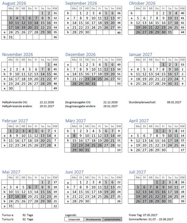 Wochenpläne 2026/2027